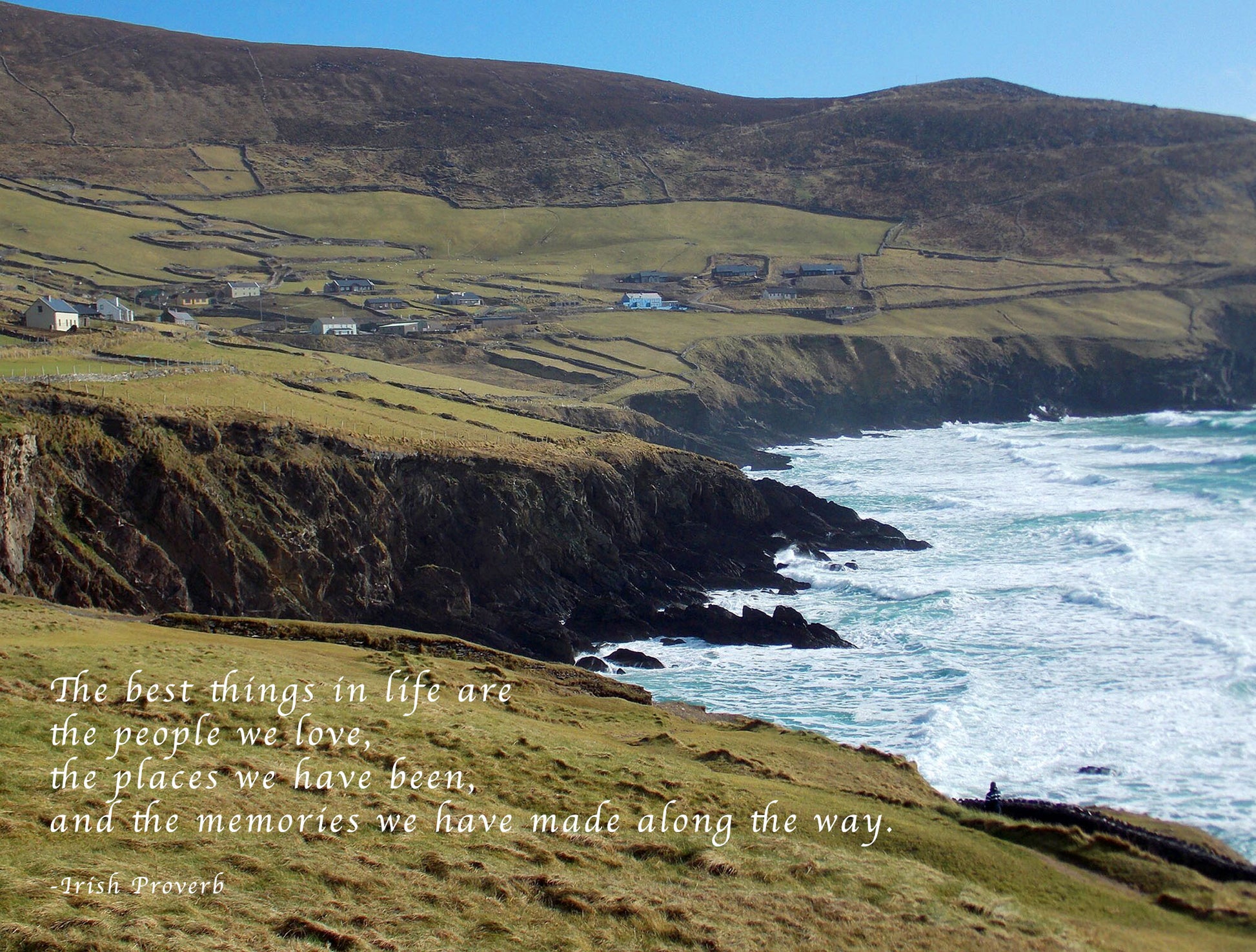 " The best things in life are the people we love, the places we have been and the memories we have made along the way." A photograph from along the Dingle Peninsula, Ireland is paired with one of our favorite Irish Proverbs.