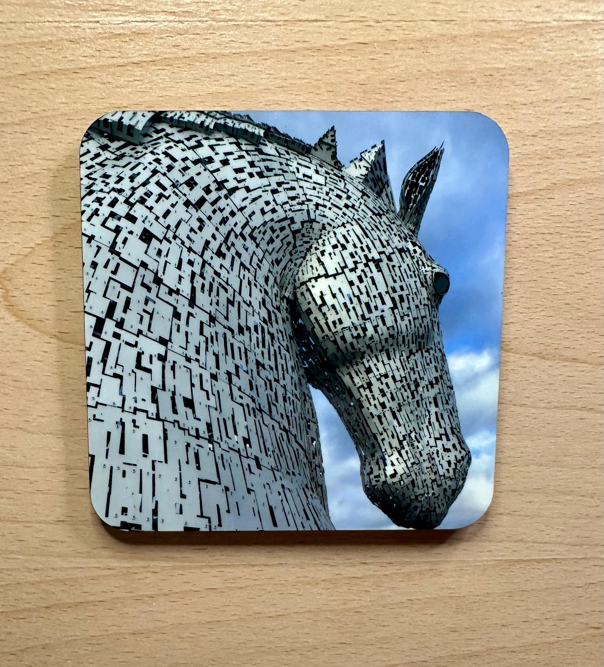 Each coaster measures 4” x 4” with a high gloss finish and no slip cork backing.