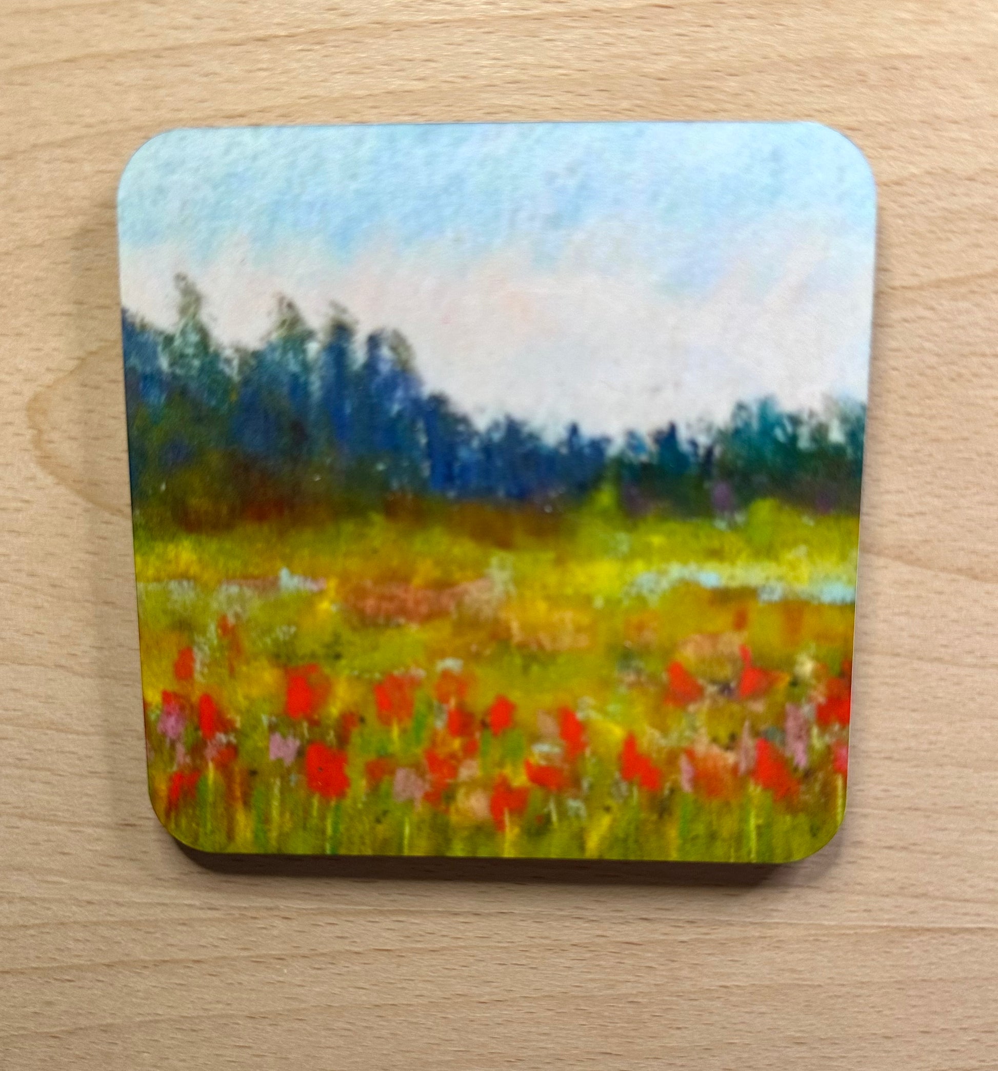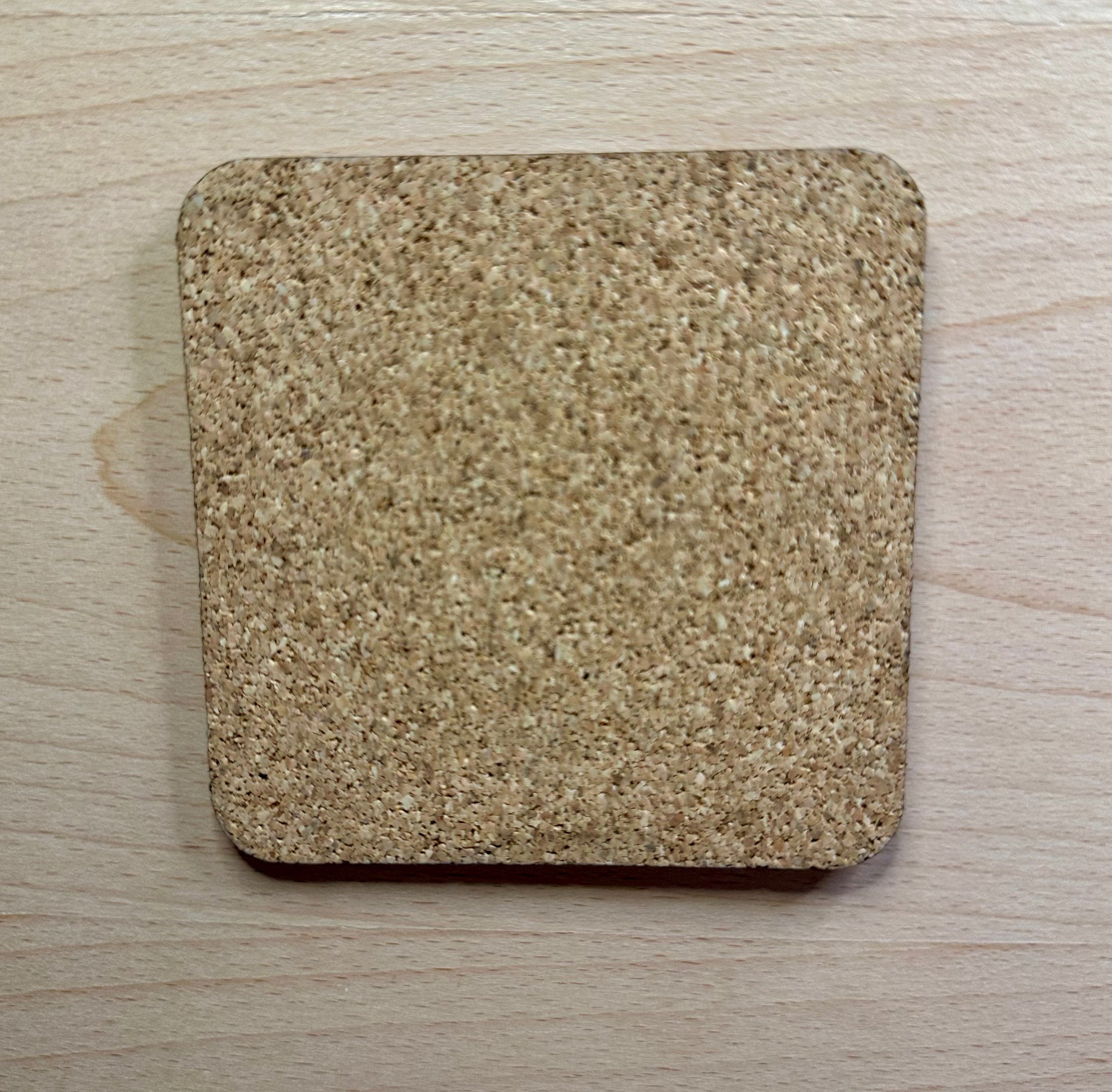 Each coaster measures 4” x 4” with a high gloss finish and no slip cork backing.