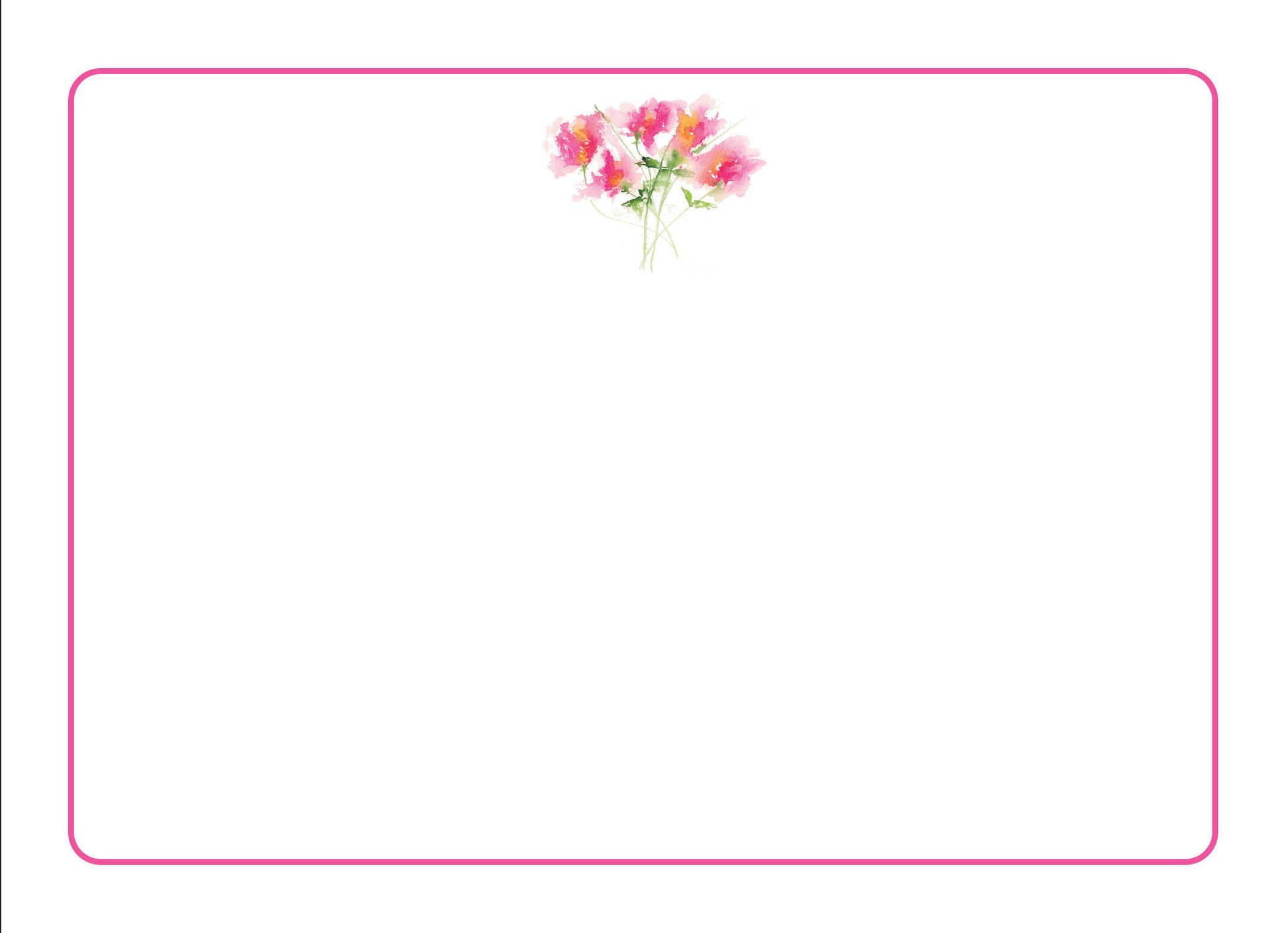 -5” x 7” flat card, embellished with our Madeline floral painting and pink border, with rounded corners, coordinating sticker to seal white envelope.