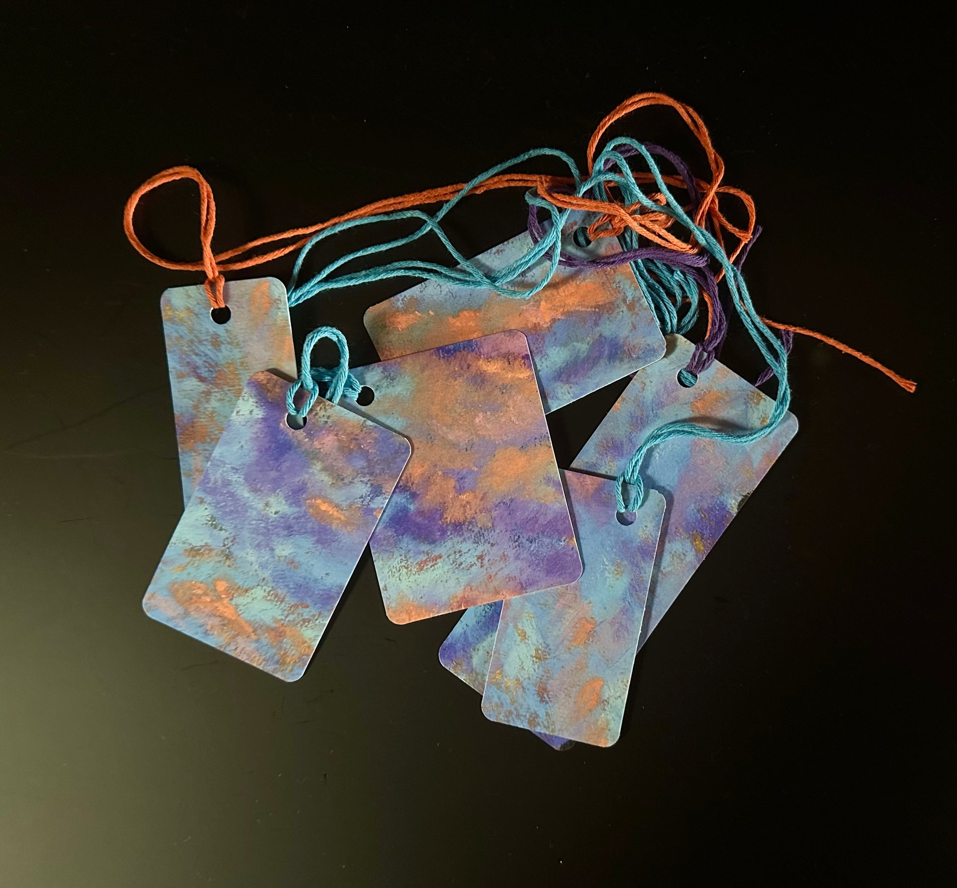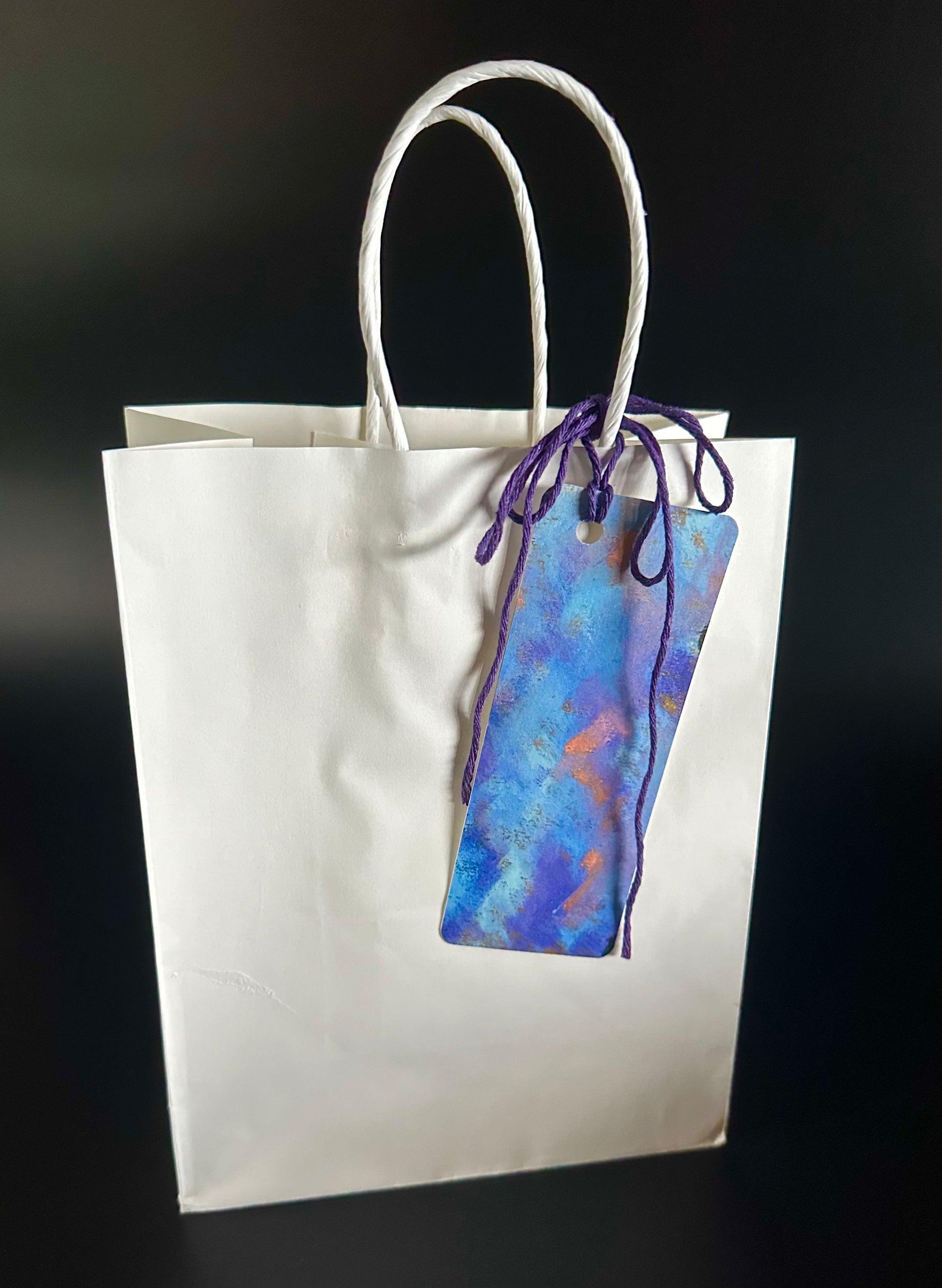 Each gift tag is different - different size, different shape, different design. Each tag is like a small painting and is already strung with colorful cotton twine.