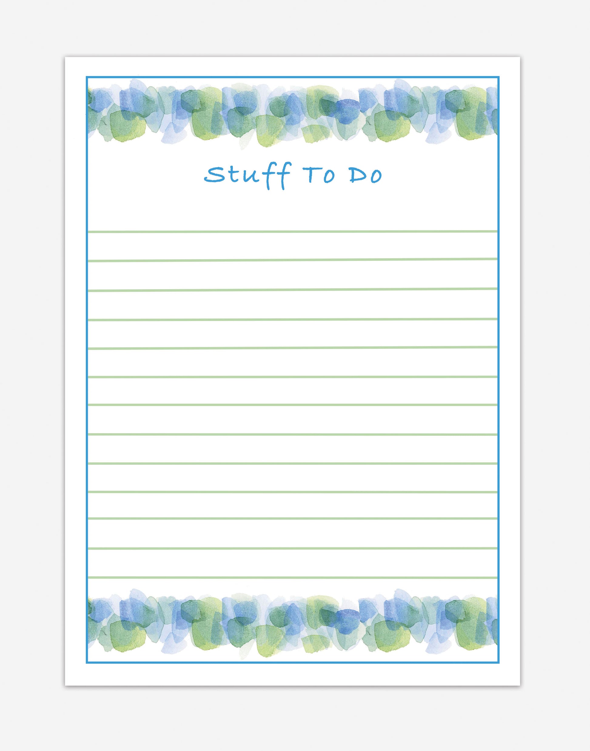 A "Stuff To Do" lined notepad to keep you organized embellished with our Sea Glass painting. This notepad exudes a summery, laid back vibe!
