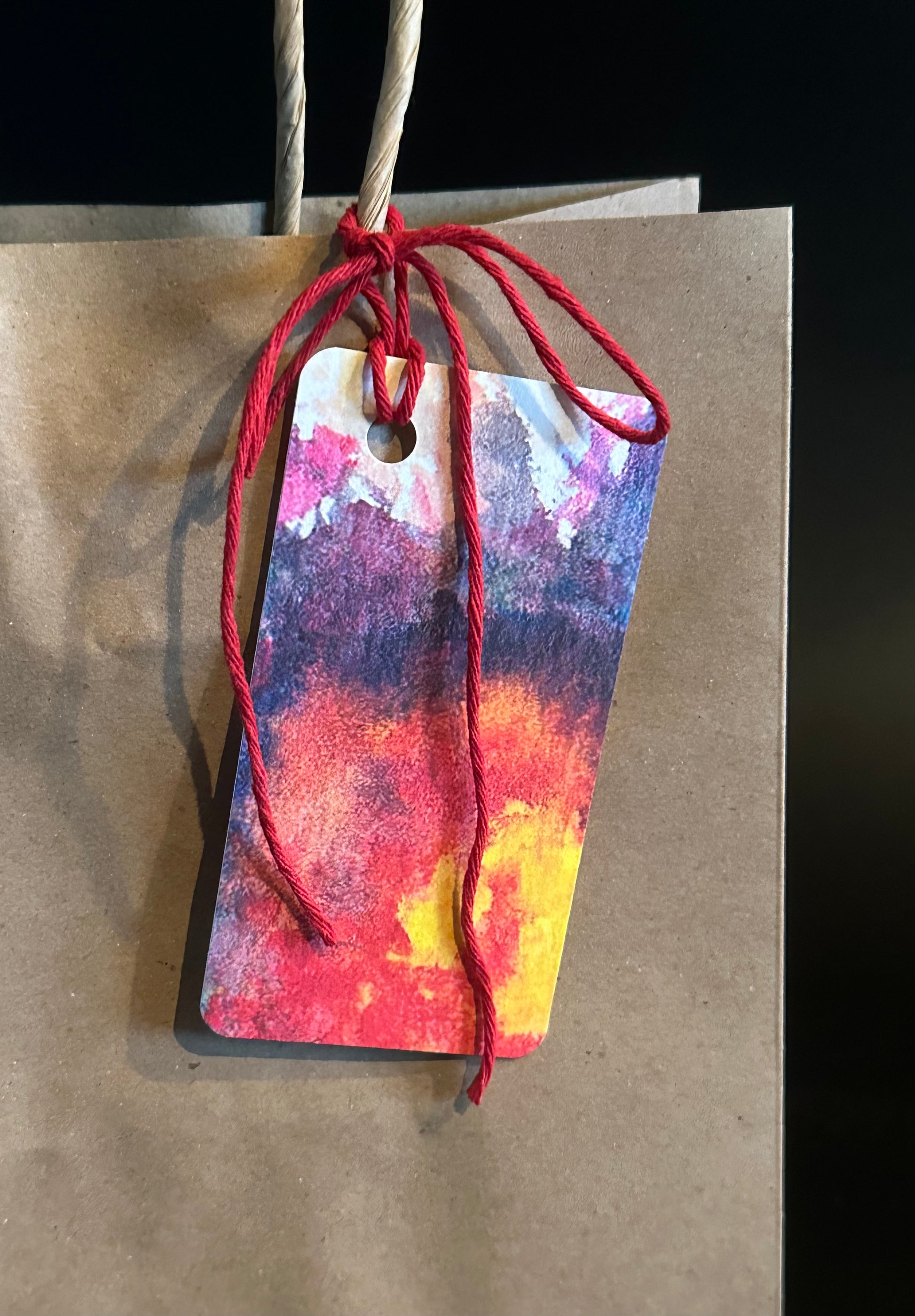 Each gift tag is different - different size, different shape, different design. Each tag is like a small painting and is already strung with colorful cotton twine.